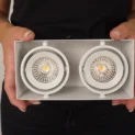 Dieser doppelte weiße Einbaustrahler aus Stuck hat eine Leistung von 2x 8W und wird an 230V angeschlossen. Der LED-Spot ist in den Farben Weiß und Schwarz erhältlich.