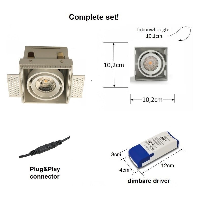 Komplettes Set aus randlosen quadratischen KARDAN f?r die Decke. Dieser Spot hat eine Farbe von 2700 Kelvin bzw. dimtowarm und l?sst sich mit dem mitgelieferten Treiber sehr gut dimmen. Dieser Spot ist im Durchschnitt 60 % energieeffizienter als ein Halogenspot. N