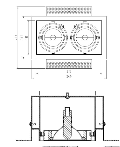 Sehr schöner großer doppelter trimless ar70-Strahler für die Decke. Dieser trimless Strahler besteht aus einem kompletten Set von trimless Strahlern.