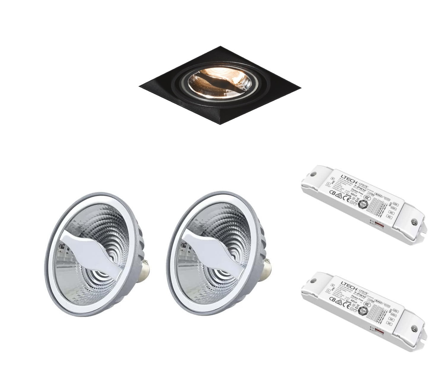 Komplett mit 2x Hochwertige LED AR70 2x8w 35° 2700K/Dimtowarm + 2x dimmbare Treiber. Erhältlich in schwarz und weiß.