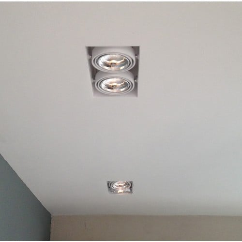 Sehr schöner großer trimless ar111 Strahler für die Decke. Dieser Strahler besteht aus 2x AR111 LED dimmbaren Strahlern.